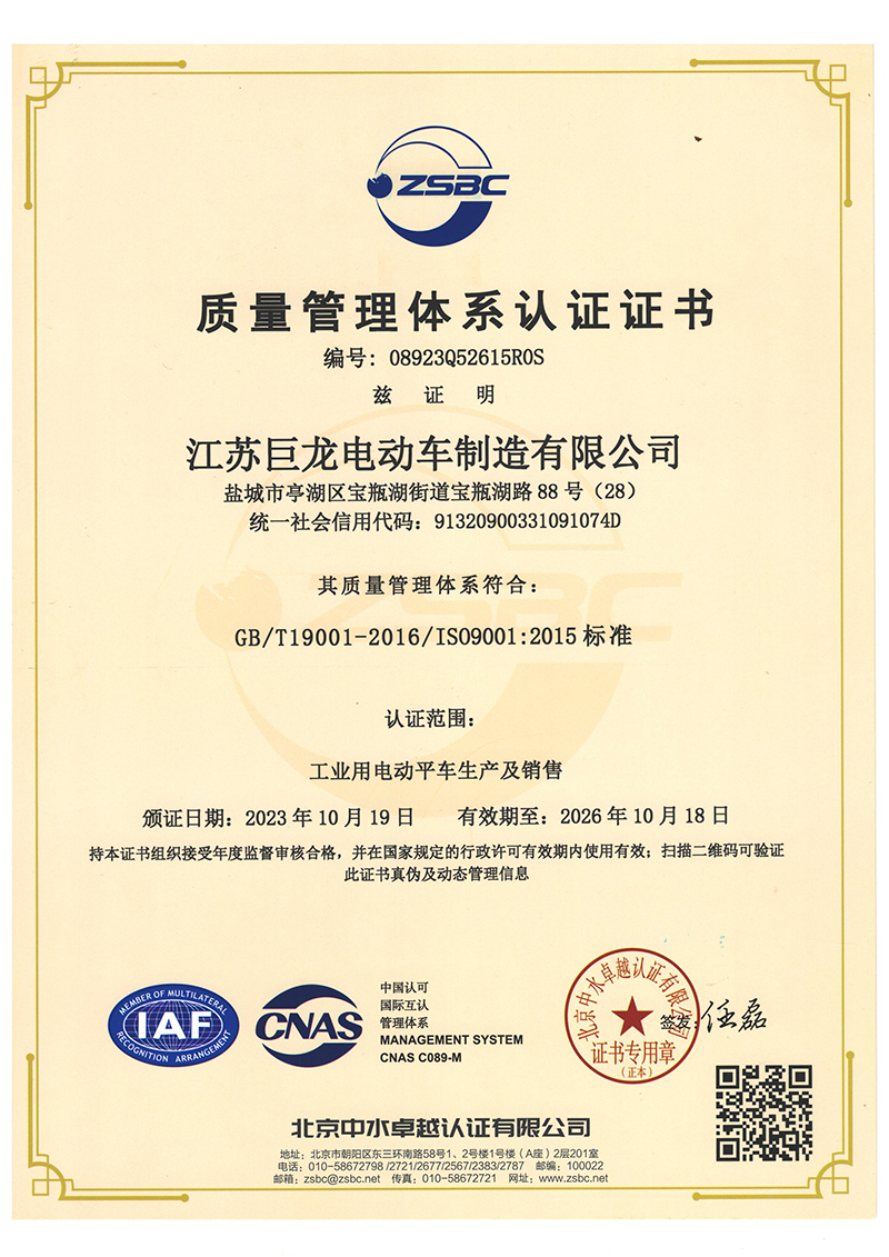 江蘇巨龍電動(dòng)車制造有限公司是國(guó)內(nèi)具有20年集研發(fā)、生產(chǎn)、銷售、售后于一體的專業(yè)電動(dòng)車輛設(shè)備公司。位于江蘇省鹽城市高新區(qū)(原市開發(fā)區(qū)),占地20000平方米,建筑面積約1 2000平方米,緊鄰寧靖鹽高速、204國(guó)道、南洋飛機(jī)場(chǎng),交通便捷。公司現(xiàn)有員工95余人,專業(yè)技術(shù)人員35余人,工程技術(shù)人員10人。擁有良好的制造、檢測(cè)、實(shí)驗(yàn)設(shè)備和完善的技術(shù)服務(wù)體系,為全國(guó)大、中型工礦企業(yè)、鋼廠、機(jī)械冶金、電廠、車站、港口、機(jī)場(chǎng)、市政環(huán)保部門、城管、公安、旅游景點(diǎn)、小區(qū)物業(yè)等行業(yè)提供雄厚的技術(shù)力量,是國(guó)內(nèi)生產(chǎn)電動(dòng)搬運(yùn)車的專業(yè)生產(chǎn)廠家。標(biāo)志著江蘇巨龍邁向發(fā)展的新臺(tái)階,必將促進(jìn)巨龍公司更加快速、長(zhǎng)足的發(fā)展。
